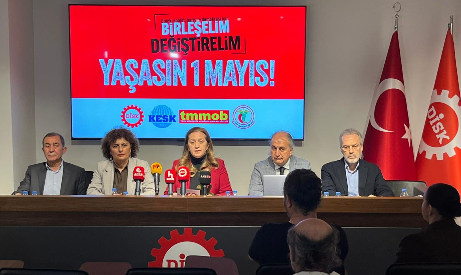 DÎSK, KESK, TMMOB û TTBê bi daxuyaniyek hevpar diyar kirin ku dê di 1ê Gulanê li Qada Taksîmê pîroz bikin û bang li hemû karker û kedkaran kirin ku ji bo dad, aştî û kedê werin 1ê Gulanê û dengê xwe bikin yek.