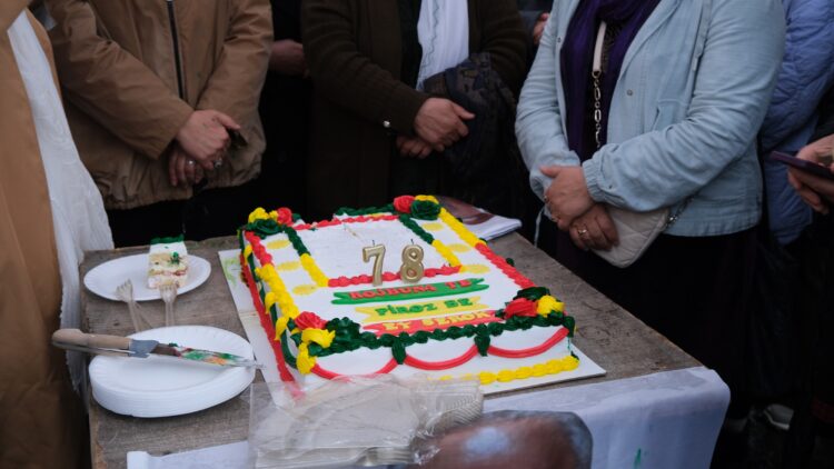 Dûre di bin baranê de jina pasteya rengê kesk, sor û zer a ku bi nivîsa “Rojbûna te pîroz be ey Serok” nivîsandibû birîn. Dema paste hate birîn jina lîrandin, stranên Kurdî gotin û kesên tev li bernameyê bûn bênavber dirûşmeya “Rojbûna te pîroz be ey Serok Apo” berz kirin û bername bi dawî bû.