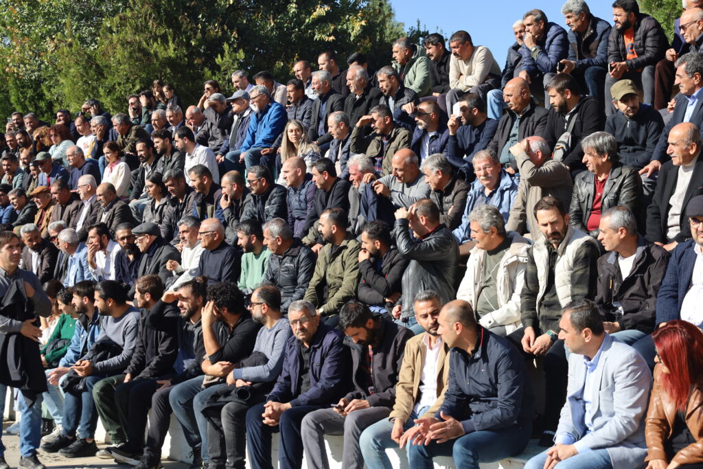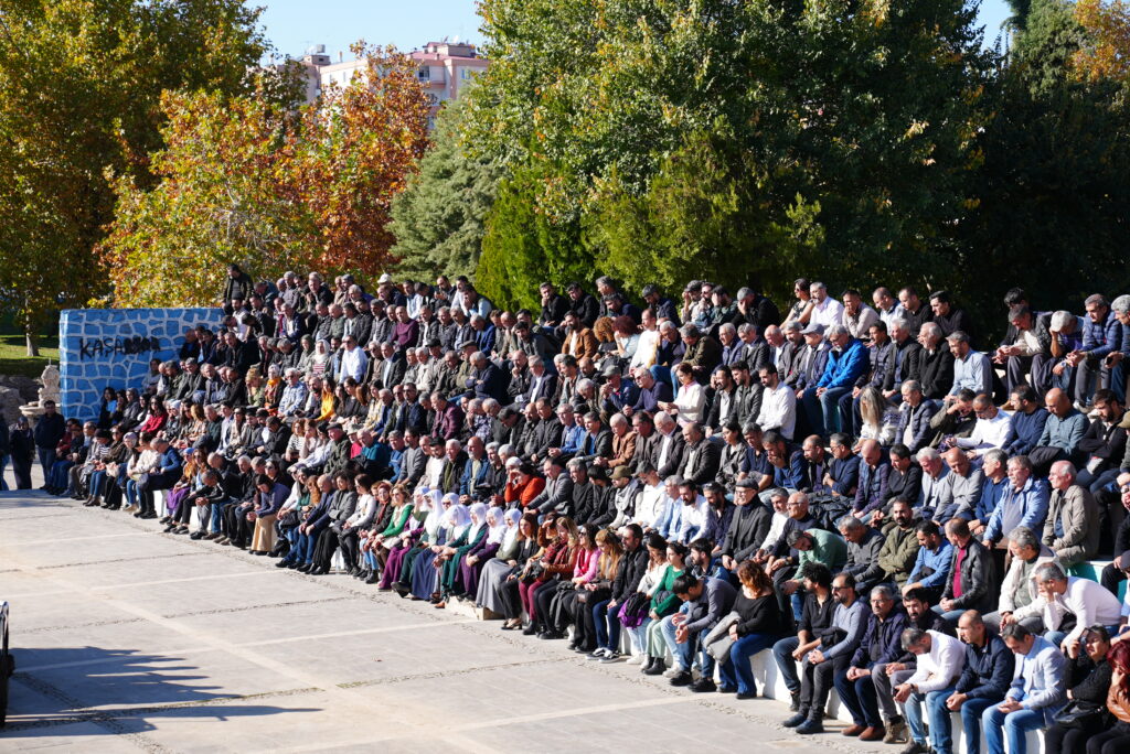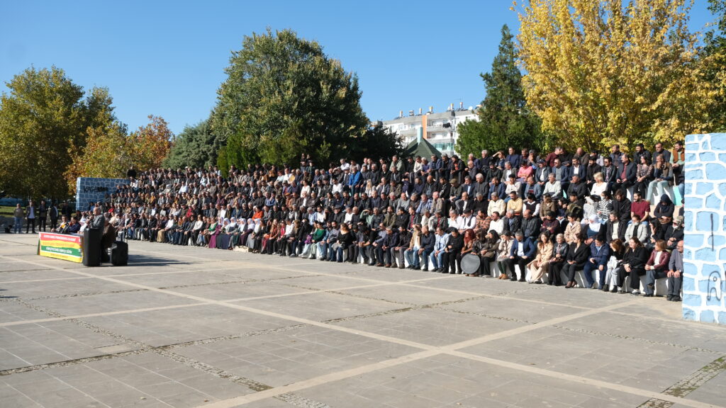 Ewilî Hevberdevka Komîsyona Ziman, Çand û Hunerê ya DEM Partiyê Cemîle Tûrhalli axivî. Cemîle Tûrhalli diyar kir ku çi heyfe ku sedan salan zêdetir di Komara Tirkiyeyê de nasnameya Kurdan nayê qebûlkirin û wiha got: “Ji me re digotin dev ji çand, nasname û zimanê xwe berdin ku bibin kole û xizmetkarên vê dewletê. Lê belê gelê Kurd înkar qebûl nekir.” Cemîle Tûrhalli diyar kir ku divê sansura li ser zimanê Kurdî ya li Meclisê demildest bi dawî bibe. Cemîle Tûrhalli bal kişand ser banga Rêberê Gelê Kurd Abdullah Ocalan û da zanîn ku divê dewlet demildest gavan biavêje. Cemîle Tûrhalli destnîşan kir ku wan ne biratiya habîl û kabîl, biratiya Yûsûf û Bunyamîn divê.