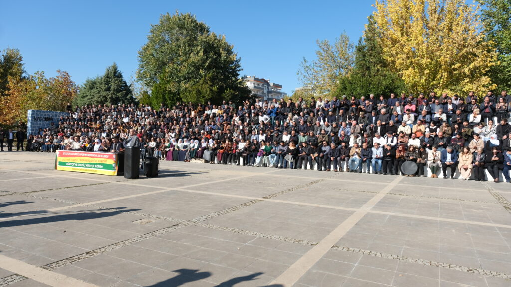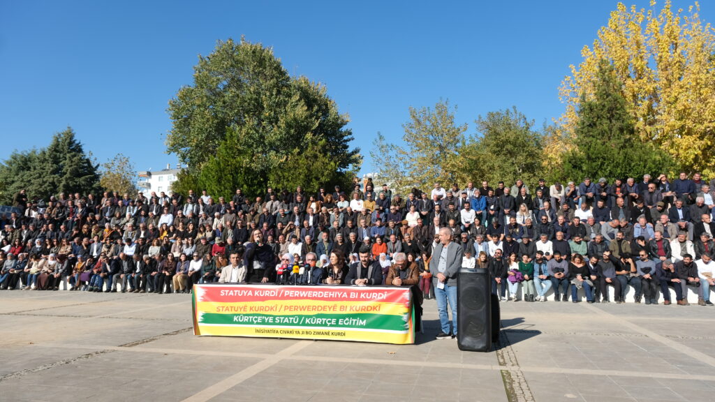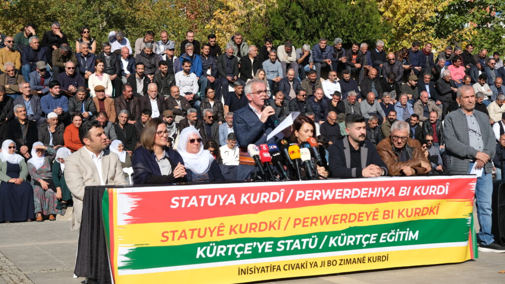 Înîsiyatîfa Civakî ya Ji Bo Zimanê Kurdî ji bo daxwazên gelê Kurd ên derbarê zimanê Kurdî de bi îmze û beşdarbûna 750 sazî, dezgeh, platform, partiyên siyasî û derdorên Kurd û demokratîk ên civakî yên li bakurê Kurdistan û Tirkiyeyê li Parka Ekîn Cerenê ya li navçeya Peyas a Amedê bi awayekî girseyî deklarasyoneke hevpar bi raya giştî re parve kir. Deklerasyon bi zaravayên kurmancî û kirmanckî yên Kurdî û bi Tirkî hate xwendin. Metna kurmancî Hevberdevkê Komîsyona Ziman, Çand û Hunerê ya DEM Partiyê Heval Dilbahar, metna kirmanckî rêvebera Enstîtuya Kurdî ya Amedê Sûzan Vejan û metna tirkî jî Hevserokê Şaxa OHDa Amedê Mûhîttîn Mûgûç xwendin. Parlamenterê DEM Partiyê yê Rihayê Omer Ocalan, hevşaredar, nivîskar, rewşenbîr, hunermend, Dayikên Aştiyê, pêkhateyên Înîsiyatîfa Civakî ya Ji Bo Zimanê Kurdî, endam û nûnerên saziyên sivîl ên civakî û partiyên siyasî û gelek kes beşdarî daxuyaniyê bûn. Di daxuyaniyê de bi kurmancî û kirmanckî yên Kurdî û bi Tirkî pankarta “Statuya Kurdî-Perwerdehiya Kurdî” hate daliqandin.