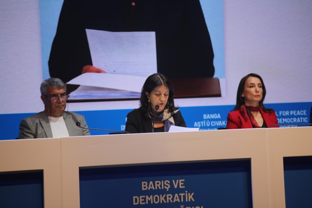 DEM Partiyê û endamên Şandeya Îmraliyê, bi boneya salvegera yekemîn a Banga Aştî û Civaka Demokratîk a 27ê Sibatê ya Rêberê Gelê Kurd Abdullah Ocalan, li Sehneya Yilmaz Guney a li Enqereyê civîna çapemeniyê li dar xist. Di daxuyaniyê de peyama nû ya Abdullah Ocalan a têkildarî pêvajoya hate xwendin. Peyam, bi zimanên Kurdî, Tirkî, Erebî û Ingilîzî hte parvekirin. Kurdiya daxuyaniyê ji hêla Veysî Aktaş û ya bi Tirkî jî endama Şandeya Îmraliyê ya DEM Partiyê Pervîn Buldanê xwend. Veysî Aktaş, got ku Şandeya Îmraliyê ya DEM Partiyê di 16ê Sibata 2026an de li Îmraliyê hevdîtinek pêk anî û peyama Abdullah Ocalan a bi rêya şandeyê şandî xwend.