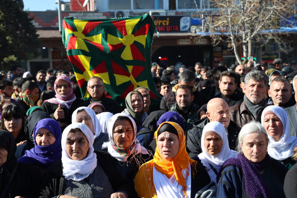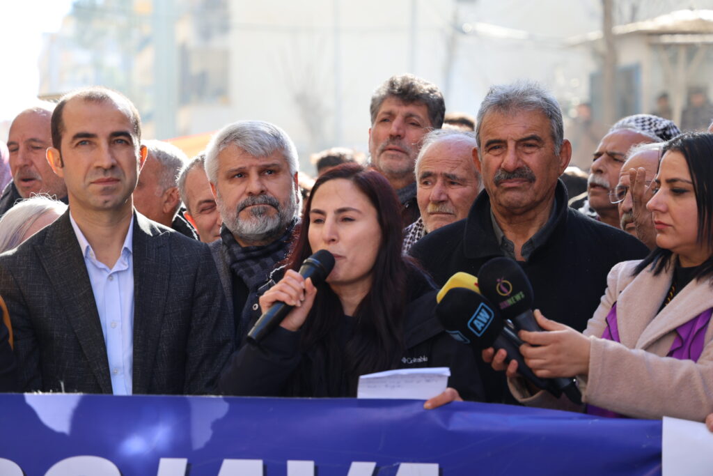 Di dawiya daxuyaniyê de Hevberdevka DEM Partiyê Ayşegul Dogan axivî. Ayşegul Dogan destnîşan kir ku dengê wan diçe Kobanê û ev tişt ani ziman: “Tiştên ku li Kobanê qewimin di hişê gelê Kurd de ye. Li Kobaniyê kuştin û koçberî çêbûn. Ji bona wê, dilê gelê Kurd ji bo Heleb û Rojavayê diavêje. Ji me re behsa bangawaziya 27ê Sibatê tê kirin. Bêle em jî jixwe bi salan e ji bo vê bangê têdikoşin. Ji bo jiyanek hevpar em li ber xwe didin. Bangawaziya 27ê Sibatê ji bo her kesî ye. Birêz Abdullah Ocalan dibêje ziman ji bo pêşxistina pêvajoya bila hebê. Lê em dibînin ku zimanê wan li dijî pêvajoyê ye.”