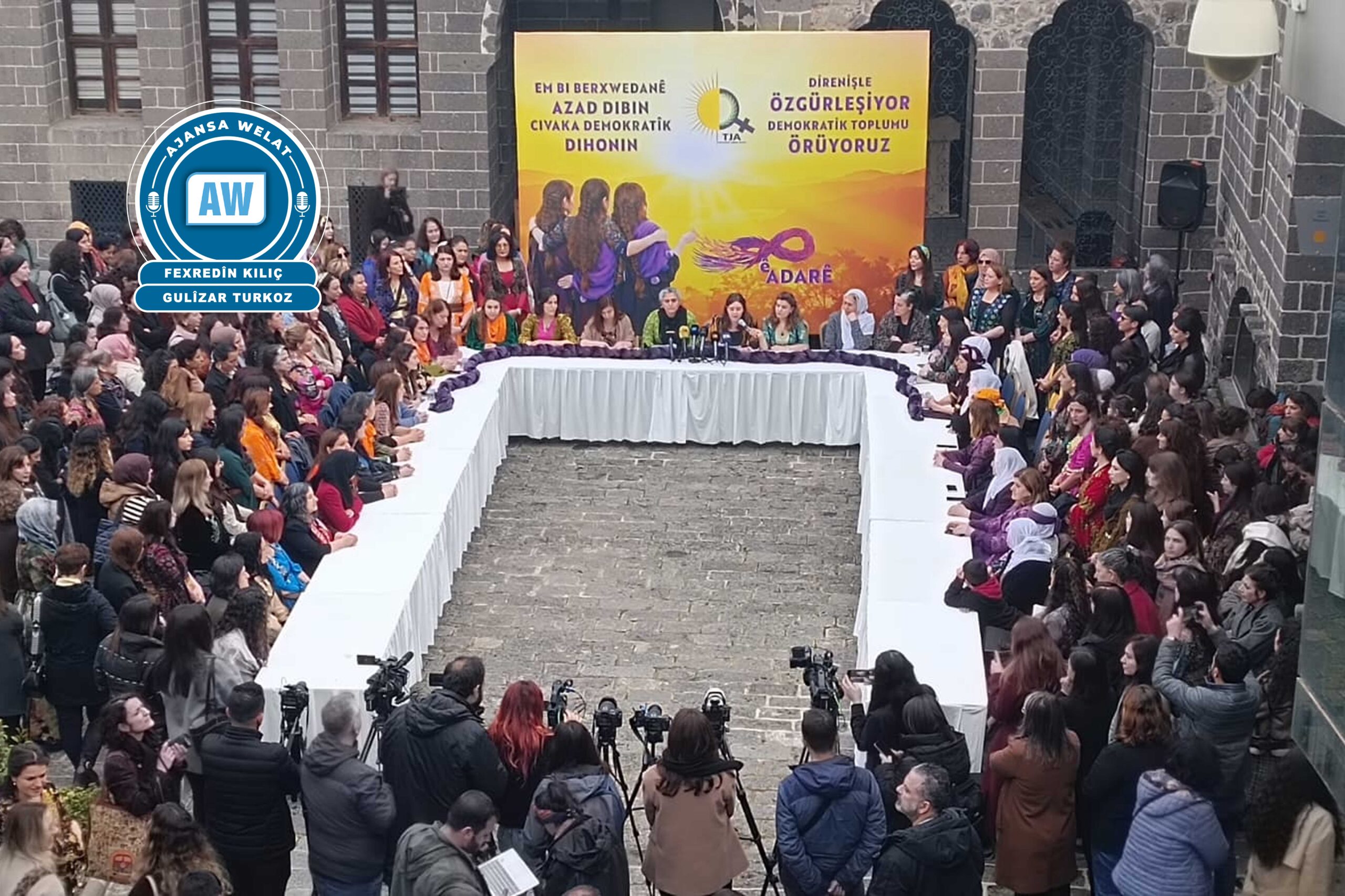 Amed – TJAyê duh li Amedê deklarasyona 8ê Adarê eşkere kir. Aktivîstên TJAyê Harîka Peker û Arzû Karaman bang li hemû jinan kirin ku xwe bi rêxistin bikin û gotin: “Em ê di vê 8ê Adarê de hem ji bo aştiyeke mayînde, hem jî ji bo azadiya jinan têkoşîna xwe bilindtir bikin.”