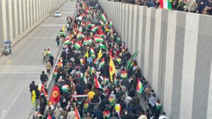 Bi hezaran ku ji hunermend, nivîskar, nûnerên aliyên siyasî, mamosteyên ol, jin, ciwan û hemû beşên civakê tevlî meşê bûne.