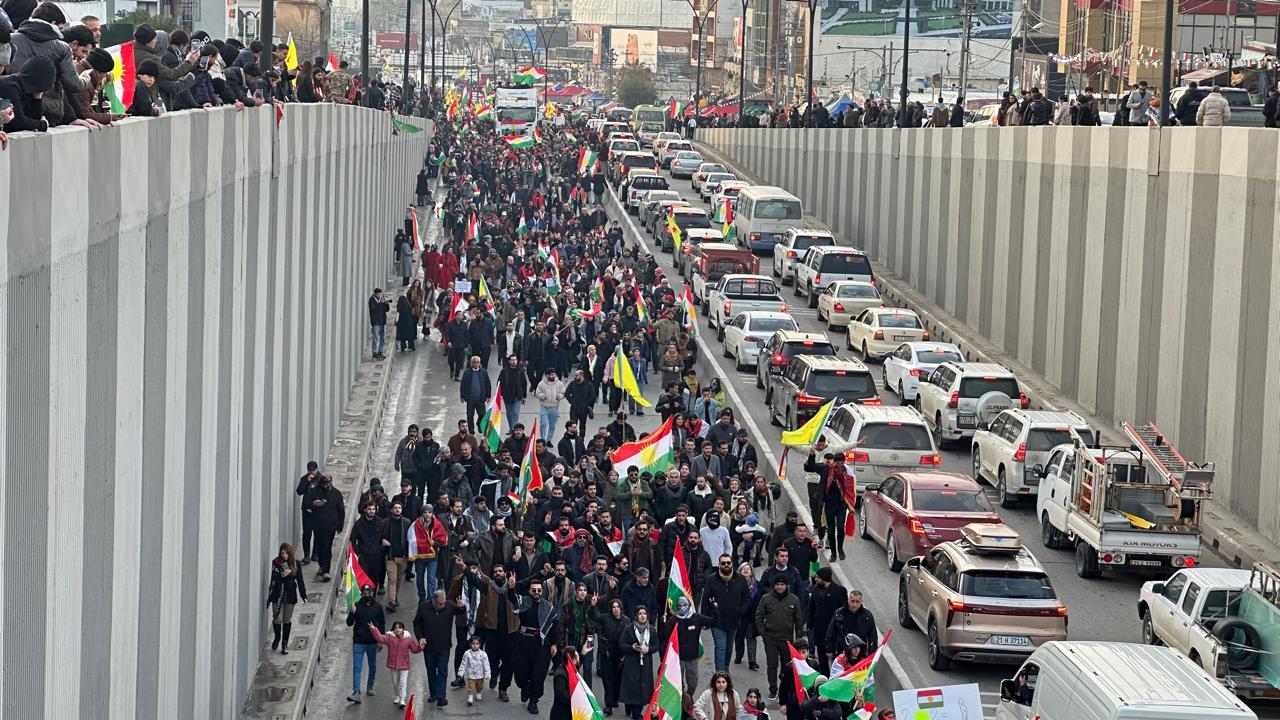 Bi hezaran ku ji hunermend, nivîskar, nûnerên aliyên siyasî, mamosteyên ol, jin, ciwan û hemû beşên civakê tevlî meşê bûne.