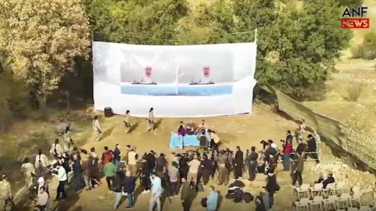 Rêveberiya Tevgera Azadiya Kurd têkildarî Pêvajoya Aştî û Civaka Demokratîk li Qendîlê daxuyani da. Daxuyanî ji aliyê çapemeniya cîhanê ve eleqeyek mezin dît. ANFê dîmenên qada daxuyaniyê yên droneyê parve kir.