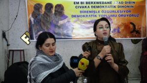 TJAyê bi şiara “Em bi berxwedanê azad dibin, civaka demokratîk dihûnin” 8ê Adarê Roja Jinan a Cîhanê li Geverê pîroz kir. Aynûr Sarica ku di bernameyê de axivî got: “Bi saya Rêberê Gelê Kurd Abdullah Ocalan îro bi felsefeya ‘Jin jiyan azadî’ em li qadan e, li kolanan e û hemû cihan e.”