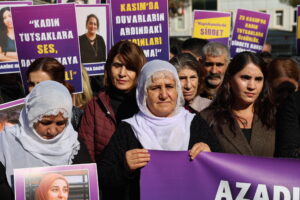 MED TUHAD-FED û TUAY-DER têkildarî binpêkirina mafên girtiyên jin li pêşiya Edliya Amedê daxuyanî da. Parlamenter Newroz Uysal diyar kir ku azadiya jinên girtî bi destê lîjneyan tê astengkirin û got: “Heta ku tevahiya girtiyan werin berdan wê têkoşîna me berdewam bike.”