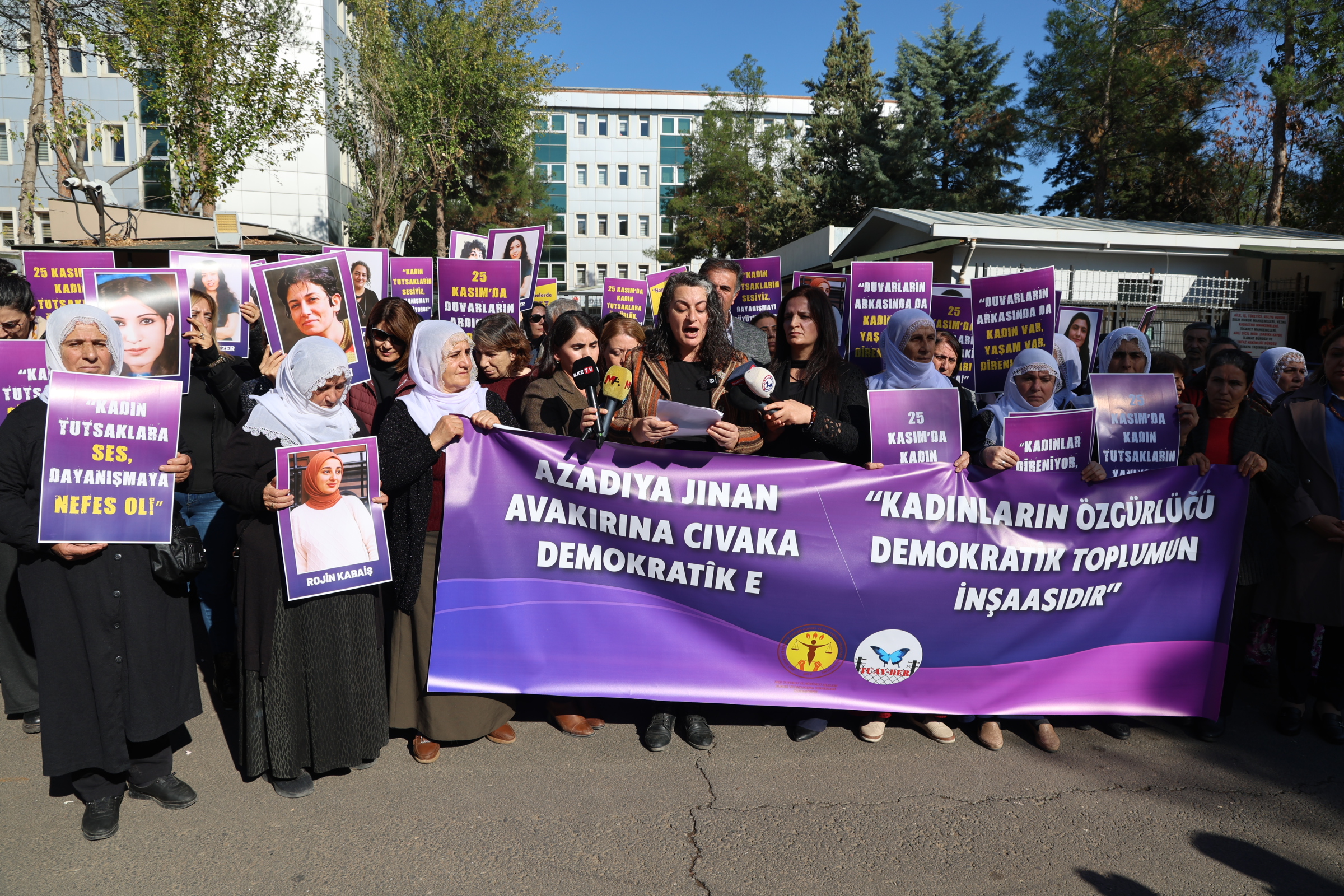 Federasyona Komaleyên Hiqûq û Piştevaniyê ya Malbatên Girtî û Hukumxwaran a Medê (MED TUHAD-FED) û Komeleya Hevgirtinê ya bi Malbatên Girtî û Hikûmxwaran re (TUAY-DER) ji bo binpêkirina mafên girtiyên jin li pêşiya Edliya Amedê daxuyanî da. Rêveberên MED TUHAD-FEDê, TUAY-DERê, nûnerên rêxistinên sivîl, Dayikên Aştiyê, Hevserokên DEM Partî û DBPê yên Amedê, Parlamenterê DEM Partiyê yê Amedê Mehmet Kamaç û Parlamentera DEM Partiyê ya Şirnexê Newroz Uysal û gelek kes tev li daxuyaniyê bûn.