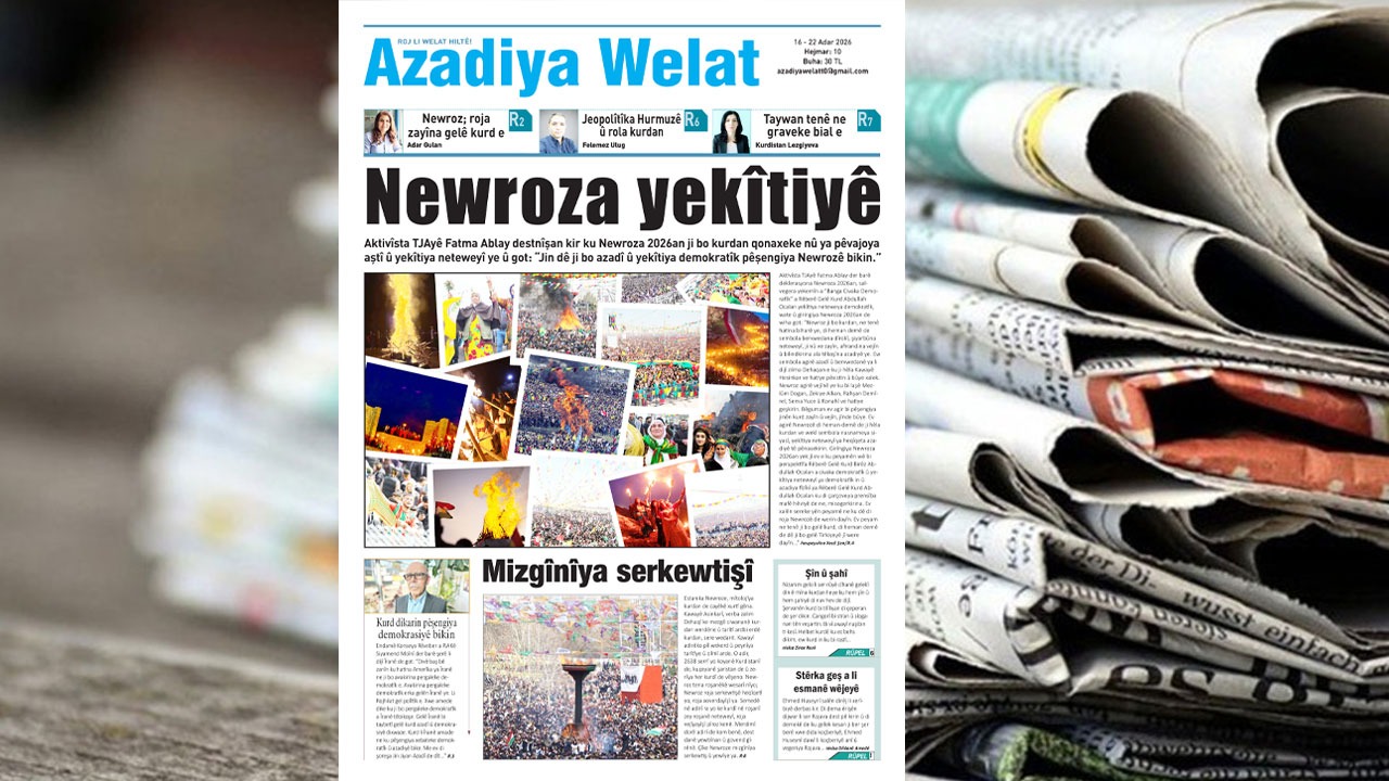 Rojnameya Azadiya Welat ku heftane tê çapkirin, di hejmara 10emîn de bi manşeta “Newroza yekîtiyê” gihîşt ber destê xwîneran. Rojnameyê vê hefteyê jî cîh da peyama Rêberê Gelê Kurd Abdullah Ocalan a ku ji bo Salih Muslim şandibû. Rojnameyê têkildarî deklerasyona Newroza 2026an, plasaziya çalakî û mitîngên 21ê Newrozê bi aktivîsta TJAyê Fatma Ablay re bi sernavê “Newroza 2026an qonaxa nû ya aştiyê ye” hevpeyvîn kir.