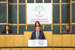 Hevserokê Giştî yê DEM Partiyê Tuncer Bakirhan di komcivîna partiya xwe de li Meclîsê axivî.