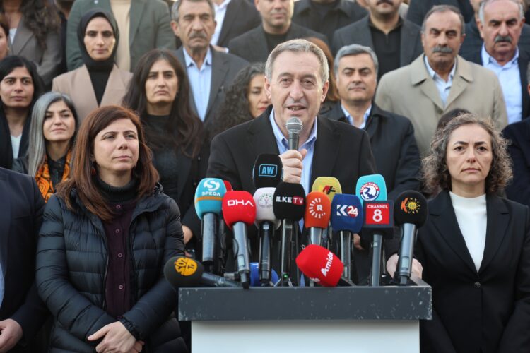 Li Amedê bi tevlibûna Hevserokê Partiya Wekhevî û Demokrasiyê ya Gelan (DEM Partî) ê Giştî Tûncer Bakirhan bi dirûşma “Em xwedî li vîna xwe derdikevin û li dijî pêkanînên qeyiman dengê xwe bilind dikin” li ber deriyê avahiya Şaredariya Bajarê Mezin a Amedê daxuyanî hate dayîn. Rêveber û Hevşaredarên DEM Partiyê yên hemû bajêr û navçeyan tev li daxuyaniyê bûn. Hevşaredarên ku qeyim tayînî şûna wan hatine kirin jî tev li daxuyaniyê bûn.