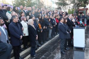 Li Amedê bi tevlibûna Hevserokê Partiya Wekhevî û Demokrasiyê ya Gelan (DEM Partî) ê Giştî Tûncer Bakirhan bi dirûşma “Em xwedî li vîna xwe derdikevin û li dijî pêkanînên qeyiman dengê xwe bilind dikin” li ber deriyê avahiya Şaredariya Bajarê Mezin a Amedê daxuyanî hate dayîn. Rêveber û Hevşaredarên DEM Partiyê yên hemû bajêr û navçeyan tev li daxuyaniyê bûn. Hevşaredarên ku qeyim tayînî şûna wan hatine kirin jî tev li daxuyaniyê bûn.