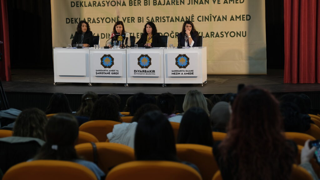 Koordînasyona Amadekariya Bajarê Jinan a Amedê Deklerasyona “Ber bi Bajarên Jinan Amedê ve” li Eywana Alî Emîrî ya Şaredariya Bajarê Mezin a Amedê bi civînekê eşkere kir. Berdevka Meclîsa Jinan a DEM Partiyê Halîde Turkoglû, Hevşaredara Bajarê Mezin a Amedê Serra Bucak, hevşaredarên navçeyan, rêveberên partiyên siyasî, nûnerên rêxistin û komeleyên jinan, xebatkarên jin ê şaredariyê û gelek jin tev li bernameyê bûn. Bername bi axaftina Hevşaredar Serra Bucak dest pê kir.
