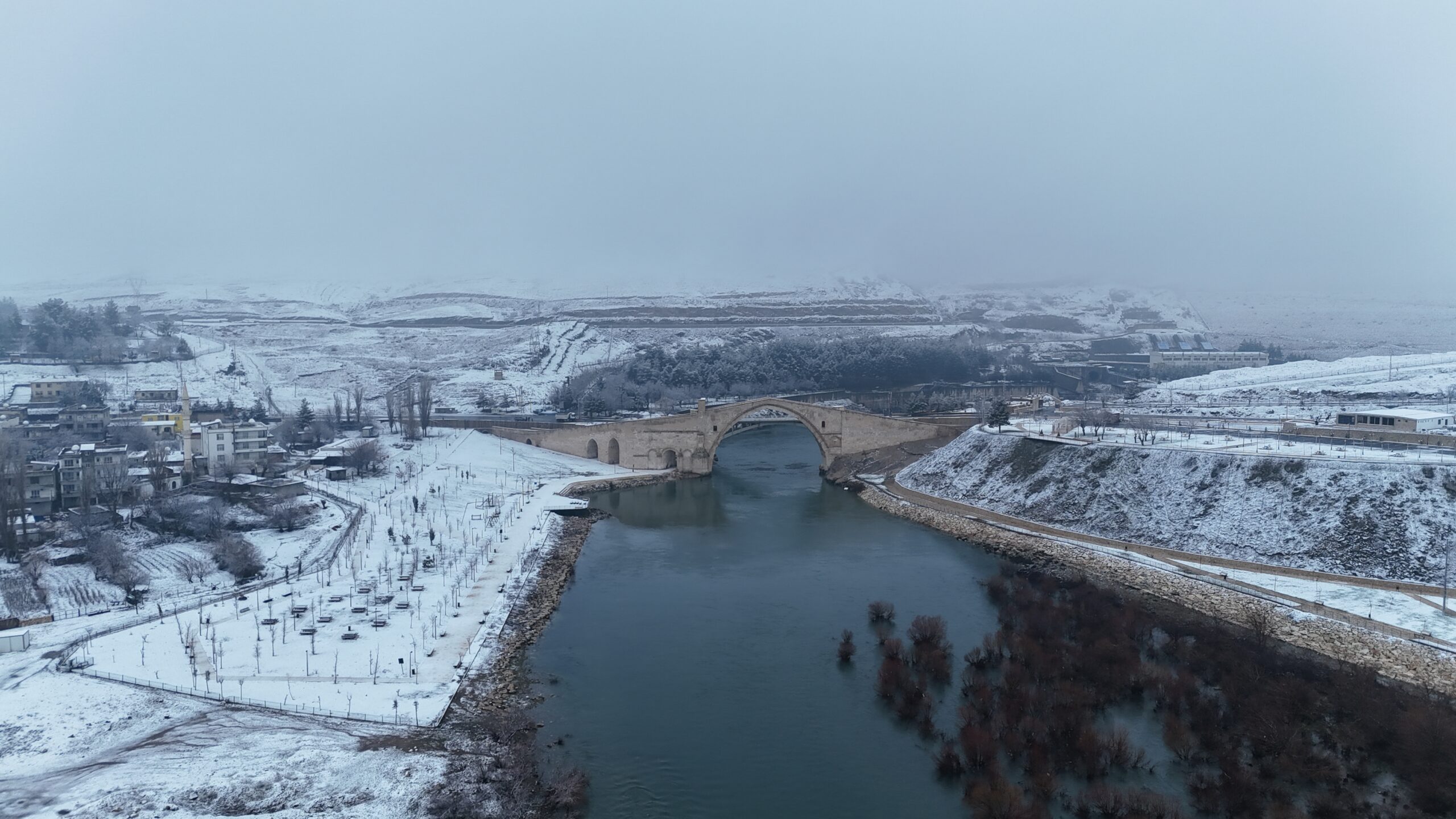 Şûnwarên dîrokî Pira Malabadê û Şikeftên Hesûnê yên li navçeya Farqînê bi xweşikiya berfê xemilîn.