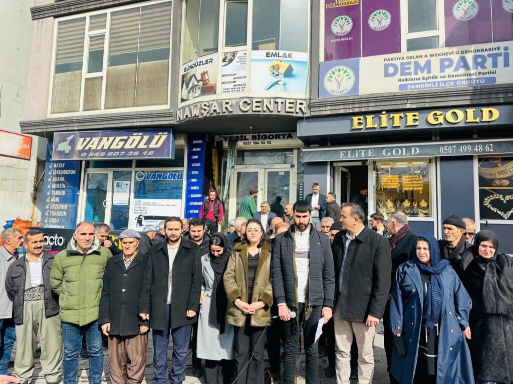 Platforma Ked û Demokrasiyê ya Colemêrgê li dijî vê operasyona qirkirinê li Colemêrg û navçeyên wê yên Gever û Şemzînanê bi awayekî hemwext daxuyaniyeke hevpar da. Her sê daxuyanî jî li ber avahiyên DEM Partiyê hatin dayîn. Parlamenterên DEM Partiyê, hevşaredar û pêkhateyên platformê di nav de gelek kes beşdarî daxuyaniyan bûn. Daxuyaniya li Colemêrgê Hevserokê DEM Partiyê yê Colemêrgê Nazmî Coşkûn, daxuyaniya li Geverê Hevseroka DBPê ya Geverê Gulcan Ceylan û daxuyaniya li Şemzînanê jî rêveberê DEM Partiyê Zekî Soyler xwend.