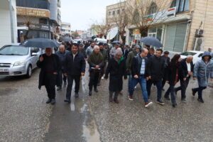 Girseyê di meşê de bênavber dirûşmeyên “Rojbûna te pîroz be ey Serok Apo”, “Bijî Serok Apo” û “Bê Serok jiyan nabe”, “Silav silav ji Îmraliyê re hezar silav” berz kir.
