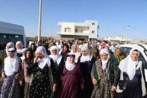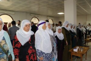 Dema girse gehişt cihê şînê destpêkê ji bo cangoriyên azadiyê rêzgirtin pêk hat. Piştî rêzgirtinê Endama Meclîsa Dayîkên Aştiyê ya Mêrdînê Makbûle Okmen axivî û got ew li ber têkoşîna şehîdan bejna xwe ditewînin.