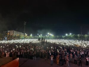 Koma Amed piştî 30 salan li Amedê konser da. Bi sed hezaran kes tev li konserê bûn. Hevserokê DBPê Keskîn Bayindir diyar kir ku Azadiya Rêberê Gelê Kurd Abdullah Ocalan azadiya gelê Kurd e.”