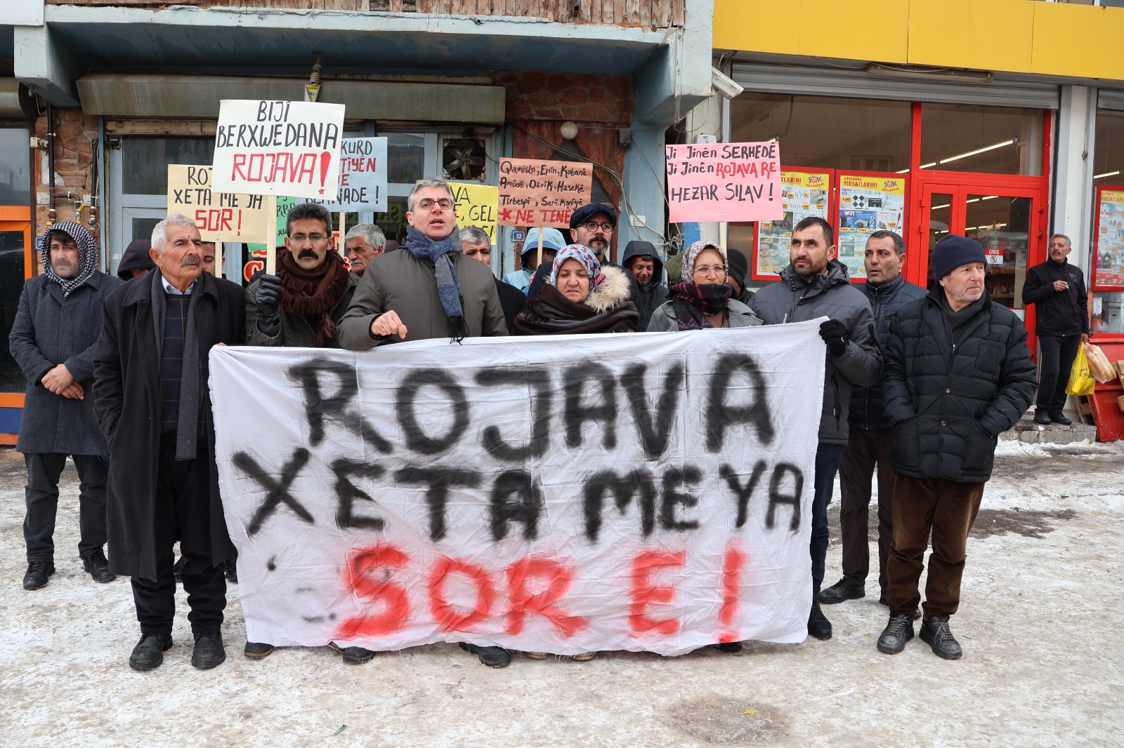 Li navçeya Giyadînê ya Agiriyê li dijî êrişên li ser Rojava ku bi destê çeteyên HTŞ, DAIŞê û SMOyê yên girêdayî Tirkiyeyê tên kirin, daxuyanî hat dayîn. Di daxuyaniyê de pankarta “Rojava xeta me ya sor e” hat vekirin û dirûşmeya “Bijî berxwedana Rojava” hat berzkirin. Her wiha lolîpopên ku li ser “Ji jinên Serhedê hezar silav ji jinên Rojava re”, “Bijî berxwedana Rojava” û “Qamişlo, Efrîn, Kobanê, Amûdê, Dêrîk, Hesekê, Tirbespî û Serêkaniyê ne bi tenê ye” hatin rakirin. Parlementerên DEM Partiyê yê Agiriyê Heval Bozdag, endam û rêveberên partiyên siyasî û nûnerên saziyên sivîl tev li daxuyaniyê bûn.