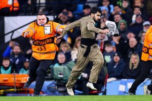 Duh êvarê li Îngîltereyê tîma Manchester City û Galatasaray hatin pêşberî hev. Di deqîqeya 50î ya maçê de sê ciwanên Kurd ketin sehê û maçê dan rawestandin. Ciwanan ku çalakî li dar xistin ala Kurdistanê vekirin û ji bo piştgiriya Rojava dirûşme ya “Bijî Kurd” berz kirin. Bi taybetî ciwanek ku bi cil û bergên Kurdî çalakî li dar dixe, bêtir balê kişand ser xwe.