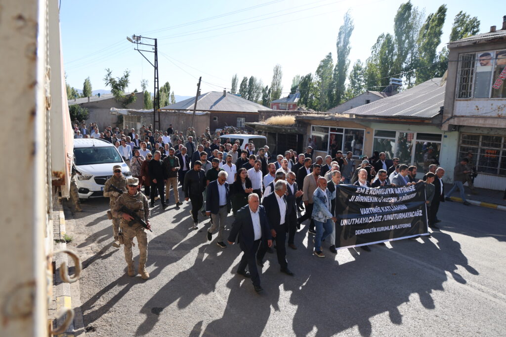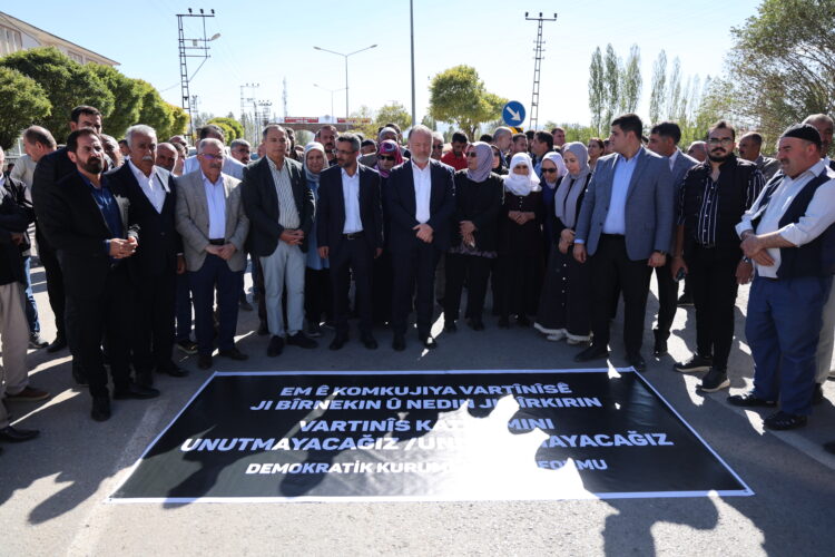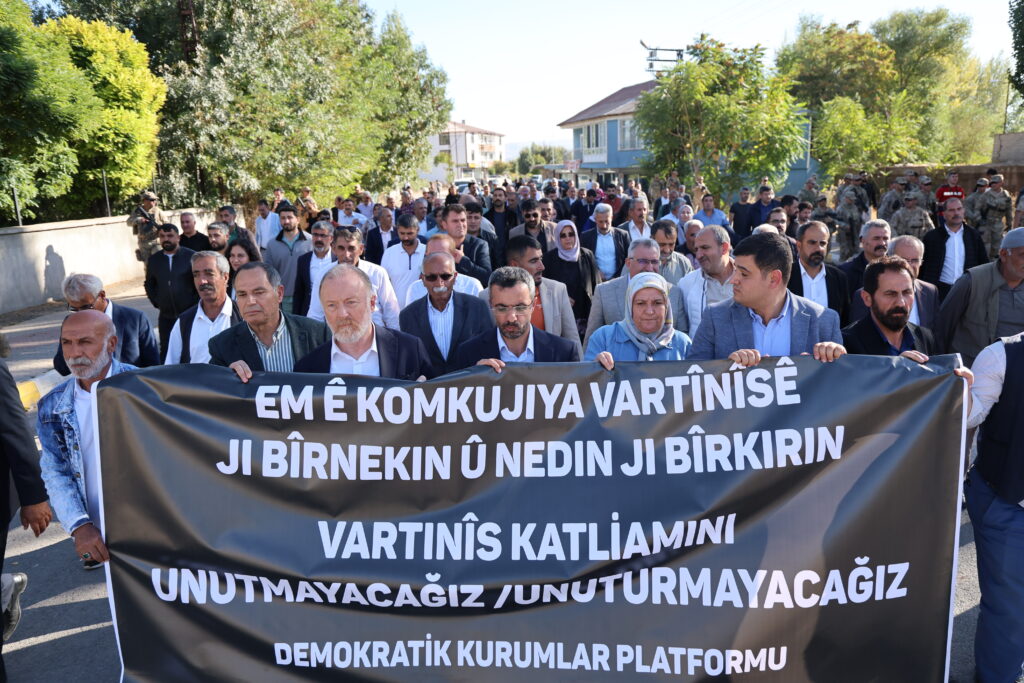 Qurbaniyên Komkujiya Vartinîsê bi meş û daxuyaniyekê hatin bîranîn. Serokwekîlê Koma DEM Partiyê Sezaî Temellî di bernameyê de got: “Em ê civakek demokratîk ava bikin da ku êdî qetlîam çênebin û kes hewl nede ku hebûn û nasnameya me înkar bike.”