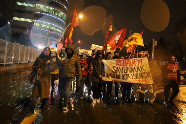 Rêxistinên ciwanan li dijî êrîşên hikûmeta demkî ya Şamê li ser taxên Kurdan Şêxmeqsûd û Eşrefiyê yên Helebê li Enqereyê meşiyan. Ciwanan bi berzkirina dirûşmeyên “Bijî berxwedana Rojava” û “Bijî wekheviya gelan” bertek nîşanî êrîşan dan.