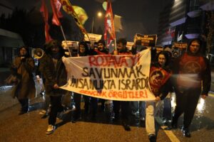 Rêxistinên ciwanan ên li Enqereyê li dijî êrîşên hikûmeta demkî ya Şamê li ser taxên Kurdan Şêxmeqsûd û Eşrefiyê yên Helebê meşiyan. Ciwanan pankarta li ser, “Parastina Rojava israra mirovbûnê ye” vekirin li kolana Kenedy a navçeya Çankayayê ya Enqereyê dest bi meşê kirin. Ciwanan bi berzkirina dirûşmeyên “Bijî berxwedana Rojava”, “Bijî wekheviya gelan”, “Kurdistan dê ji faşîstan re bibe goristan”, “Kujer Colanî hevkar AKP” û “Bijî berxwedana gelan” heta kolana Ataturk meşiyan. Ciwanan rêya kolanê ji trafÎkê re girtin û bang li raya giştî, sosyalîst û demokratan kirin ku xwedî li Rojava derbikevin.
