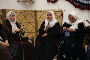 Dayikan di diwana Kurdewarî de teşiyên xwe ristin û gotin: “Me di nava kar û barê gundan yê bi zor û zehmet de karê destan jî dikir û me her nexşek bi hêza xwe û ya xwezayê afirandine. Her nexşekî navek û çîrokek wê heye.”