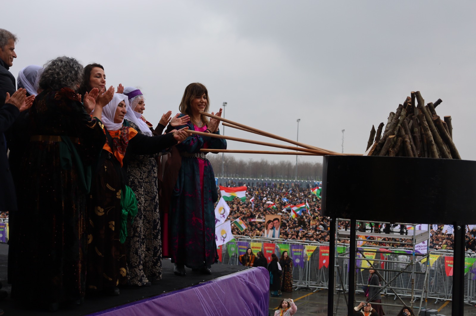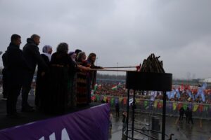 Li Stenbolê agirê Newrozê ji aliyê Dayikên Aştiyê, Hevseroka Giştî ya DEM Partiyê Tulay Hatîmogullari, Çetîn Arkaş, aktivîstên TJA Gulten Kişanak û Sebahat Tuncel û Hevdervka HDKê Meral Daniş Beştaş ve hat pêxistin.