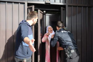 Dayikên Aştiyê xwest çeleng deyne ber deriyê balyozxaneyê lê polîsan êrişî dayikan kir. Lê tevî êrişa polîsan jî dayikan çeleng danî û daxuyanî dan.