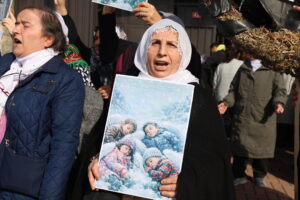 Paşê jî Dayika Aştiyê Sultan Bozkurt axivî. Sultan Bozkurt anî ziman ku ew li vir DAIŞê şermezar dikin lê êrişî wan tê kirin û got: “Trump tucarê xwînê ye. Îngîltere jî wisa ye. Bila destê xwe ji ser gelê Kurd vekişînin.”