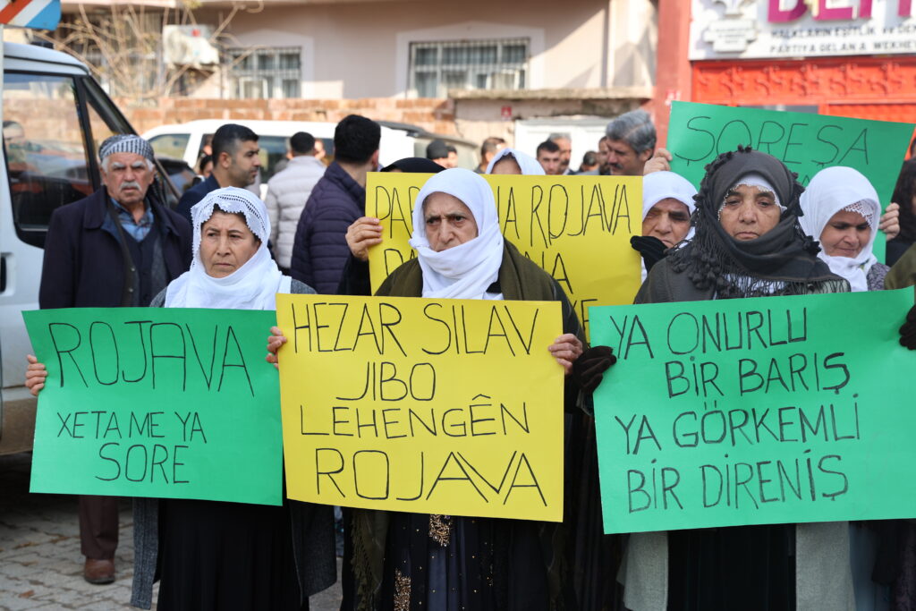 Meclisa Dayikên Aştiyê ya Botanê ji bo êrîşên ser taxên Eşrefiyê û Şêxmeqsûd ên Helebê şermezar bikin berê xwe dan Enqereyê. Li gel endamên Meclisa Dayikên Aştiyê yên Botanê û gelek rêveberên partiyên siyasî, nûnerên saziyên demokratîk û welatî li ber avahiya DEM Partiyê ya Cizîrê kom bûn. Girseya kombûyî berî ku dayik bir ê bikevin diruşmên, “Rojhilat Rojava Kurdistan e yek welat” , “Bijî berxwedana Rojava” , “Bijî berxwedana Şêxmeqsûd” berz kirin.