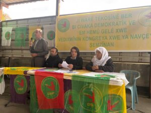 Hevserokê DBPa Şemzînanê Yûnûs Ozkoyûncû bixêrhatina beşdaran kir û bal kişand ser pêvajoya Aştî û Civaka Demokratîk û got: “ Ji bo ku ev pêvajo bi ser bikeve, aştî pêk were em ê bêtir bixebitin û rêxistinbêna xwe xurt bikin.”