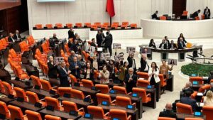 Piştî daxuyaniyê parlamenterên DEM Partiyê derbasî lijneya giştî bûn. Di lijneya giştî de jî wêneyên Figen Yuksekdag, Selahattîn Demirtaş û girtiyên Doza Kobanê hilgirtin û bi çepikan protesto kirin.