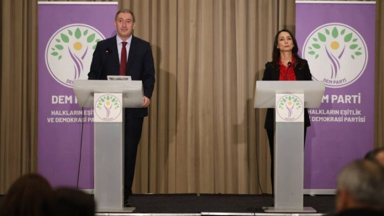 Hevserokên Giştî yên DEM Partiyê Tulay Hatîmogullari û Tuncer Bakirhan li ser biryara çûyina komîsyonê ya ji bo Girava Îmraliyê ku bi Rêberê Gelê Kurd Abdullah Ocalan re hevdîtinê bike daxuyaniya nivîskî parve kirin û gotin bila bibe wesileya aştiyeke mayînde.