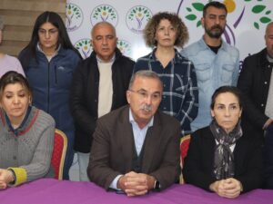 Rêxistina Partiya Wekhevî û Demokrasiyê ya Gelan (DEM Partî) a Îzmîrê derbarê sê polîsên ku daxwaziya sixurkirinê li Hevserokê navçeya Narlidereyê kirine daxuyaniyek da. Gelek welatî, nûnerên saziyên sivîl tevli daxuyaniyê bûn. Daxuyanî Hevserokê DEM Partiyê ya Îzmîrê Selçuk Odabaşi xwend.