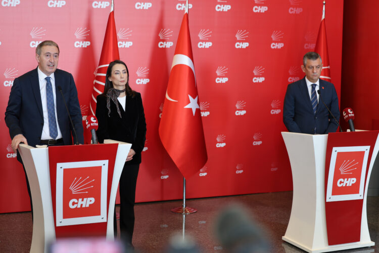 Hevserokên Giştî yên DEM Partiyê Tuncer Bakirhan û Tulay Hatimogûllari bi şandeya xwe ve serdana Navenda Giştî ya CHPê kirin û bi Serokê Giştî Ozgur Ozel re civiyan. Piştî hevdîtina DEM Partî û CHPê bi rojeva êrişên ser Rojava, serokên herdû partiyan daxuyaniya hevpar dan çapemeniyê.
