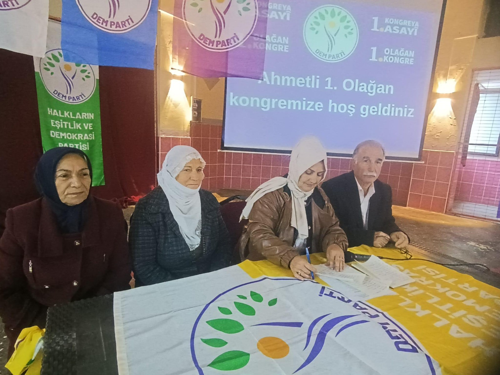 Partiya Wekhevî û Demokrsiyê ya Gelan (DEM Partî) ya navçeya Ahmetliyê ya Manîsayê bi şîara “Em aştî û cviaka demokratîk xwe birêxistin dikin” 1emîn Kongreya Asayî li salona konferansê ya şaredariyê li dar xist. Hevserokên DEM Partî yên Manisyê Kerem Taylan û Evîn Gunsel jî di nav de nûnerên partiyên siyasî, rêxistinên sivîl û gelek kes tevli kongreyê bûn.