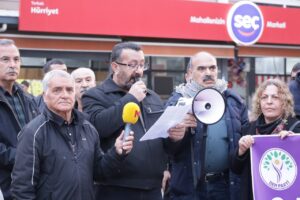 Hevserokê DEM Partiyê ya Torbaliyê Yavuz Aras daxuyanî xwend.