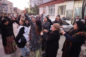 Rêxistina DEM Partiyê ya navçeya Torbaliya Îzmîrê li Kolana Qehwexaneyan derbarê êrişên li ser Rojava daxuyaniyek da û piştî daxuyaniye heta Çayxaneya Yavuzlar meşiya. Jinên li qadê li pişt hev rêzbûn û di çarçoveya kampanyaya “Keziyên me tirsa we ne” keziyên hev hûnandin. Di daxuyaniyê de pankarta “Rojava ne bi tenê ye, bila erişên li ser Rojava bêne sekinandin” hate vekirin, dovîzên “Rojava rûmeta me ye” hate bilindkirin û dirûşmeyên “Bijî berxwedana Rojava” û “Bijî berxwedana Kobanê” hatin berzkirin.