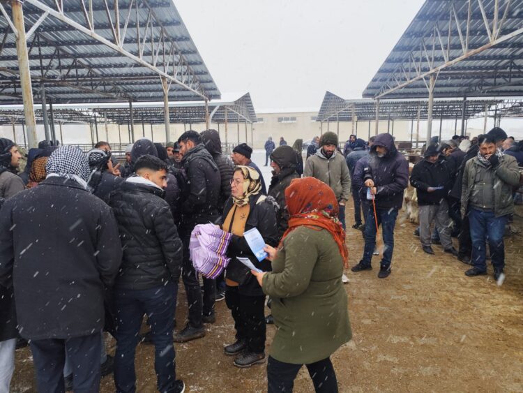 Li navenda Amedê û navçeyên wê tevî barîna berfê û hewa sar jî xebata ji bo mitîngê didome. Hevşaredarê Erxeniyê Şiyar Guldîkên û rêveberên DEM Partiyê û DBPê yên navçeyê tevî barîna berfê jî li dikandaran, qehwexaneyan û bazara sewalan geriyan û xelkê vexwendin mitîngê.