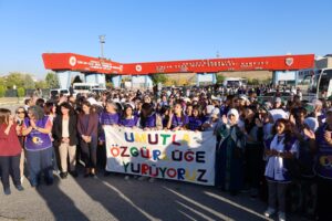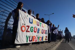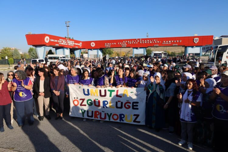 Tevgera Jinên Azad (TJA) bi dirûşma “Em bi hêviyê ber bi azadiyê ve dimeşin” di 1ê Cotmehê de ji Amedê ber bi Enqereyê ve meşek dabû destpêkirin. Meş di roja 6an de gehişt Enqereyê. Jinan li ber Girtîgeha Sîncanê pankarta li ser, “Em bi heviyê her bi azadiyê dimeşîn” dinivisî vêkirin û meşiyan. Jinan di meşe de bênavber dirûşmeya, “Jin Jiyan azadî azad bike Rêbertî”, “Mafê hêviyê nayê astengkirin”, “Azadï azadî azadiya Rêbertî”, “Mîmarê aştiyê li Îmraliyê ye”, “Silav silav hezar silav ji Îmraliyê re”, “Bê Serok jiyan nabe”, “Girtiyên siyasî rûmeta me ne” û “Mafê hêviyê mafê gelan e” berz kirin.