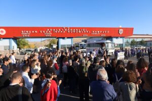 Girseya di nav de aktivîsta TJA Sebahat Tuncel, parlamenterên Partiya Wekhevî û Demokrasiyê ya Gelan (DEM Partî) û rêxistinên Enqereyê yên DEM Partî hebûn bi dirûşmeyan di nava girtîgehê de meşiyan. Girseyê li ber girtîgehê ji aliyê girseya li benda wan ve bûn hatin pêşwazîkirin. Girseyê li vir jî dirûşmeyên, “Bê Serok jiyan nabe” û “Girtiyên siyasî rûmeta me ne” ve derbasî cihê daxuyaniyê bûn.