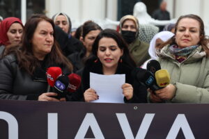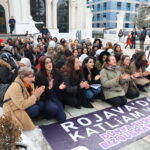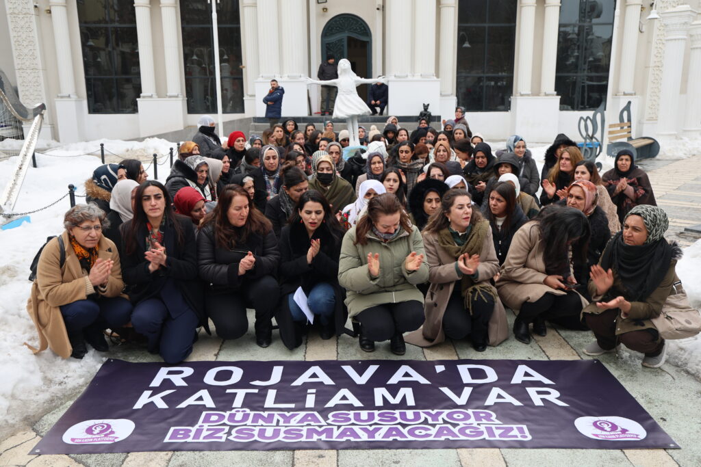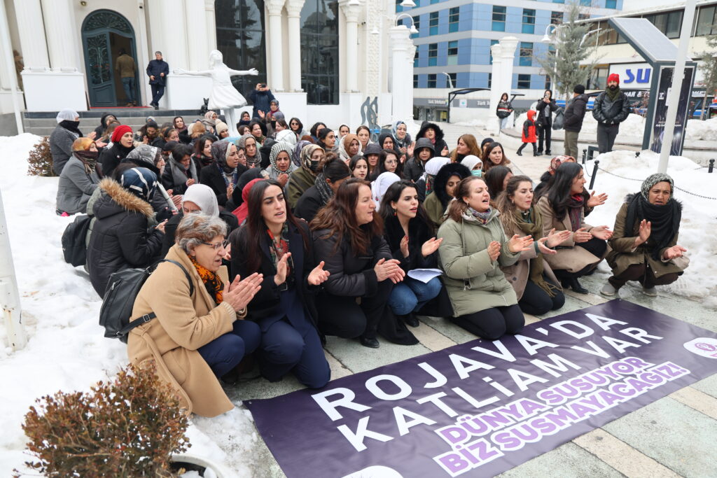 Jiyan Ozkaplan bang li raya giştî kir û axaftina xwe wiha bi dawî anî: “Ev bûyer berdewama polîtîkayên dîrokî yên înkar û îmhakirina van xakan in. Divê jin, kedkar, rewşenbîr û parêzvanên mafên mirovan li hemberî vê hovîtiyê bêdeng nemînin. Li dijî bikaranîna bedena jinan a weke xenîmeta şer, kuştina zarokan û tinekirina gelan axaftin berpirsyariyeke dîrokî ye. Çalakiya rûniştinê ya ku me îro da destpêkirin ne tenê protesto ye, ev banga edaletê ye ku li ser navê jinên hatine qetilkirin, zarokên hatine qetilkirin û gelên ku hatine binçavkirin. Divê demildest komkujî bên rawestandin, Divê îşkence, înfaz û windakirinên bi zorê bi dawî bibin, Divê çavdêrên navneteweyî yên serbixwe bikevin herêmê û divê sûcdar bên darizandin.”