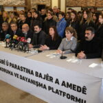 Platforma Parastin û Hevgirtin a Bajêr ya Amedê bi diruşma “Bila bilez korîdora alîkarî ya mirovî bê vekirin” li eywana Çand Amedê daxuyaniya çapemeniyê li dar xist. Endam û rêvebirên Platfromê, Baroya Amedê, hevşaredarên Bajarê Mezin û navçeyên Amedê, endam û hevserok û rêveberên partiyên siyasî, rêveberên saziyên sivîl û gelek kes tevlî daxuyaniyê bûn. Kurmanciya metna daxuyaniyê Serokê Baroya Amedê AbdulKadîr Gûleç, metna Tirkî jî hevberdevka platformê Yildiz Ok Orakê Xwend.