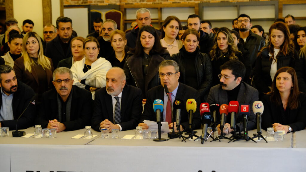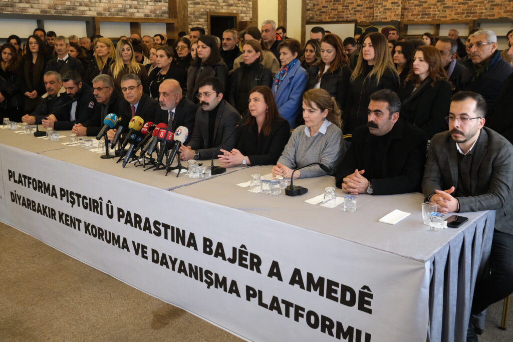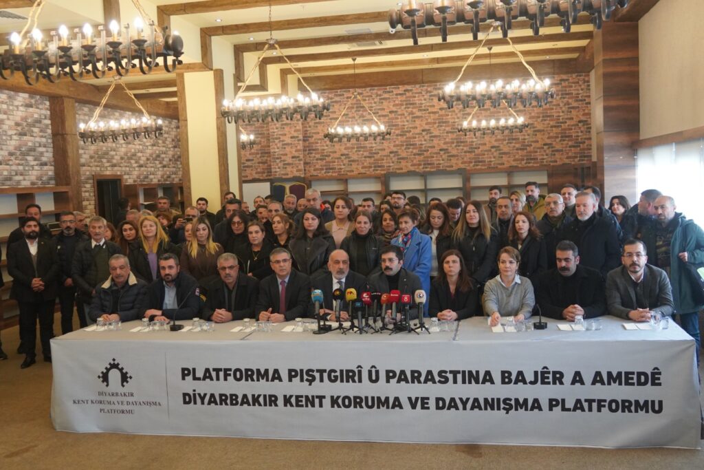Platforma Parastin û Hevgirtin a Bajêr ya Amedê bi diruşma “Bila bilez korîdora alîkarî ya mirovî bê vekirin” li eywana Çand Amedê daxuyaniya çapemeniyê li dar xist. Endam û rêvebirên Platfromê, Baroya Amedê, hevşaredarên Bajarê Mezin û navçeyên Amedê, endam û hevserok û rêveberên partiyên siyasî, rêveberên saziyên sivîl û gelek kes tevlî daxuyaniyê bûn. Kurmanciya metna daxuyaniyê Serokê Baroya Amedê AbdulKadîr Gûleç, metna Tirkî jî hevberdevka platformê Yildiz Ok Orakê Xwend.