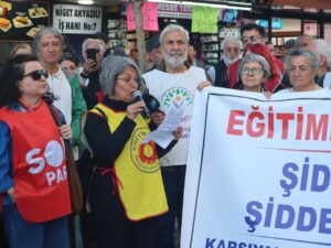 Metna daxuyaniyê li ser navê platformê ji aliyê Zeliha Danyelî ve hat xwendin. Zelîha Danyelî bal kişand ser êrîşên li Riha, Mereş û Zanîngeha Egeyê û pirsî: “Gelo ciwanên me çawa ketin vê rewşê?” Zelîha Danyelî destnîşan kir ku berpirsê sereke desthilatdar e û got: “Li vî welatî îro canê jinan, zarokan, mamosteyan û kedkaran di xetereyeke mezin de ye. Lê bela herî mezin ev pergal bi xwe ye; pergala ku şîdetê wek nan û avê asayî dike, rê li ber sûcan vedike û ciwanan bê hêvî dihêle. Zarokên ku îro dikevin nava sûcan, ne bi tesadufî lê bi zanebûn di nava vê heriyê de tên hiştin. Gava krîza aborî kûr dibe, birçîbûn û xizanî serî hildide, cihê dewletê mafya û çete digirin. Dewleta ku hemû hêza xwe daye ser serkutkirina muxalefetê, di warê perwerdehiyê de jî civak riziyandiye.”