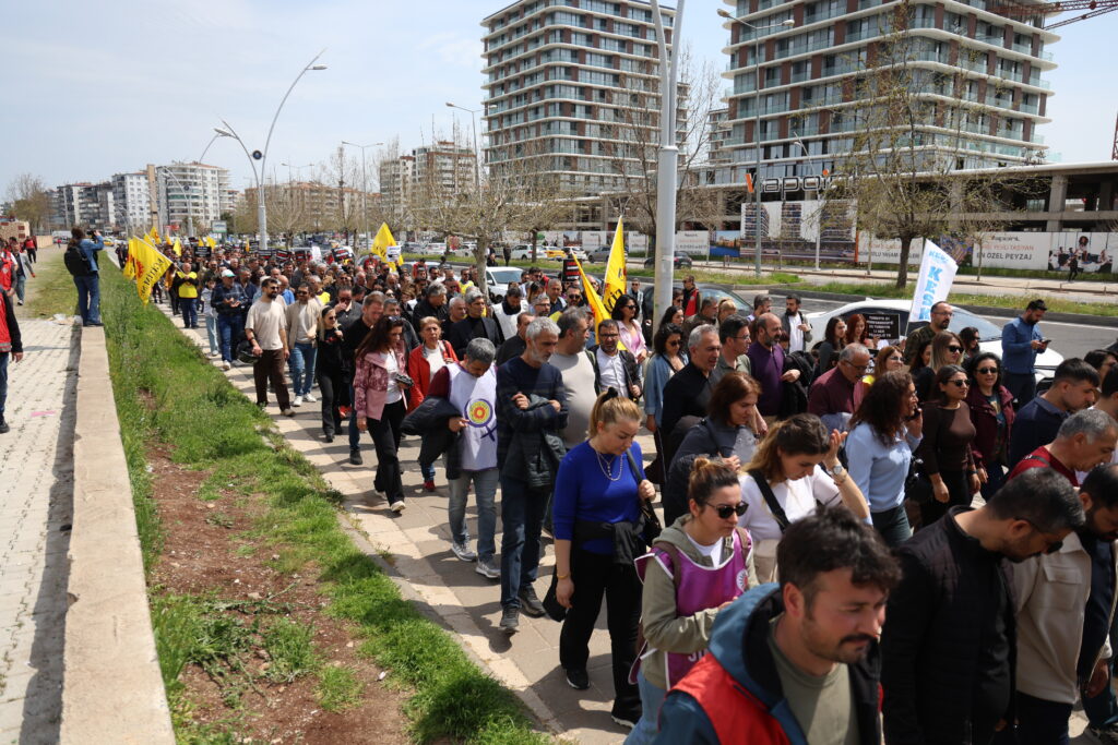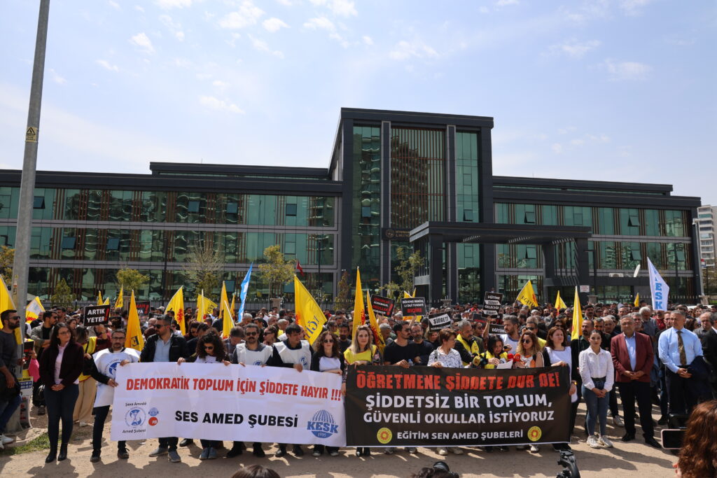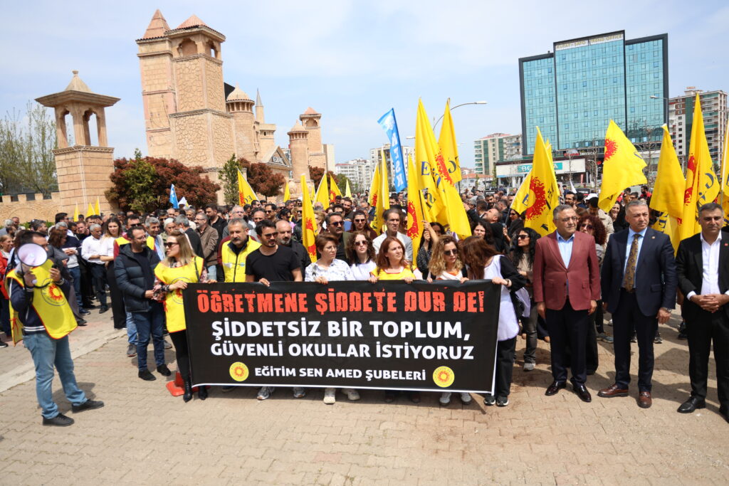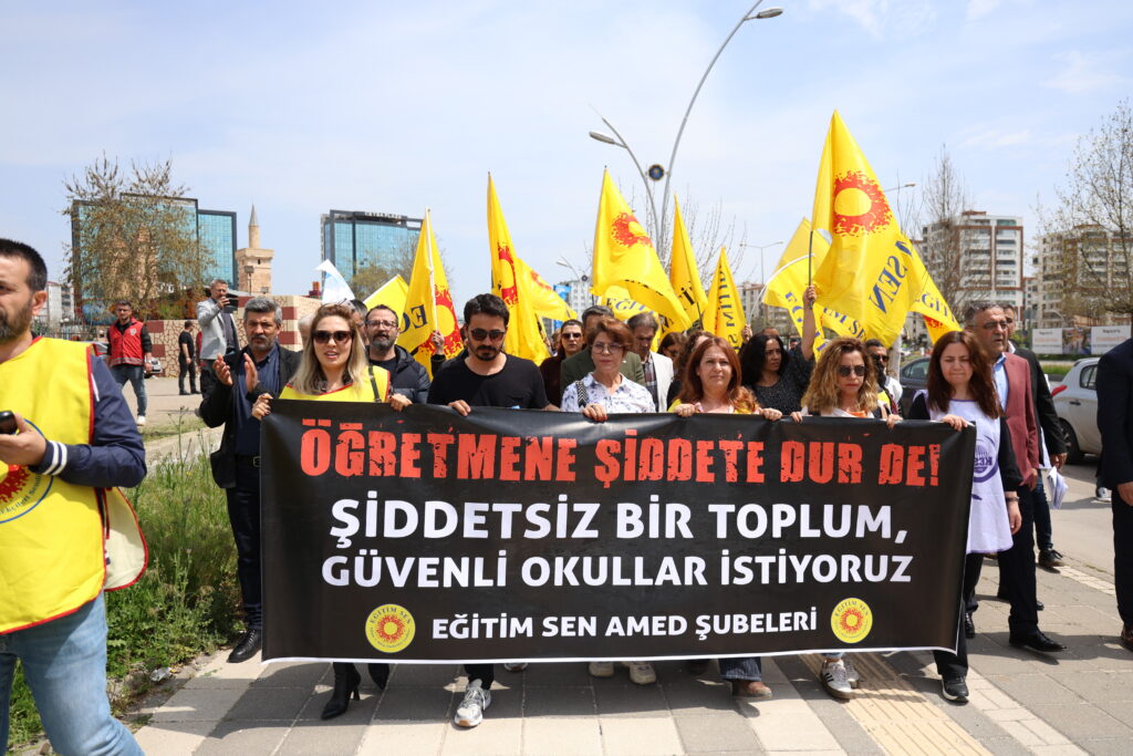 Platforma Şaxan a KESKê ya Amedê û Şaxên Egîtîm Senê yên Amedê bi boneya şermezarkirina êrişên li ser dibistanan li Xaçerêya Lûnaparkê ya li navçeya Peyas a Amedê meşek li dar xistin û li ber avahiya Miduriyeta Perwerdehiyê ya Neteweyî ya Bajêr daxuyanî dan çapemeniyê. Endam û nunerên saziyên sivîl, parlamenterê CHPê yê Amedê Sezgîn Tanrikûlû û gelek kes tev li meşê bun. Di meşê de pankarta “Ji Tundiya li Dijî Mamosteyan re Bêje Na. Em civakeke bêtundî dibistanên ewle dixwazin” û gelek dowîzên li ser girîngiya mijarê nîşan didan hatin rakirin. Girse cih bi cih diruşmên “Zarok jiyan e jiyanê nekuje” û “Bijî berxwedana kedkaran” berz kirin. Metna daxuyaniyê Rêvebera Şaxa Egîtîm Senê ya Hêjmara 1an a Amedê Ozgur Gunger Pekgunê xwend.