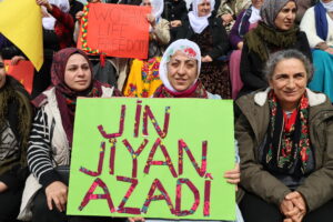 Emîne Seçen jî got: “Jin jiyan azadî. Em aştiyê dixwazin. Ji bo gelê Kurd serkeftinê dixwazin û em ê bi ser bikevin.”